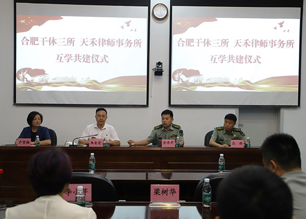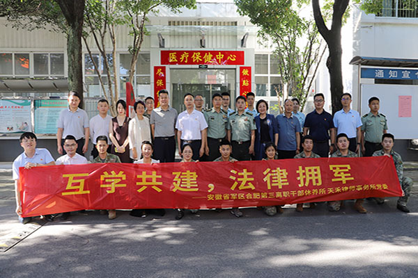 活動(dòng)上,雙方正式簽訂了互學(xué)共建協(xié)議,建立健全了互幫互助機(jī)制。朱金宏書記代表天禾所黨委向省軍區(qū)干休三所的官兵提前送上節(jié)日的問候,他提出天禾所為更好保障軍人地位和合法權(quán)益,營造“軍民團(tuán)結(jié)、法律擁軍”的良好氛圍,提高全社會(huì)“知法規(guī)、用法規(guī)、守法規(guī)”的雙擁法治意識(shí),已在所內(nèi)專門組織成立了“法律擁軍服務(wù)團(tuán)”,為廣大官兵義務(wù)提供涉軍法律相關(guān)服務(wù),保障軍人合法權(quán)益。