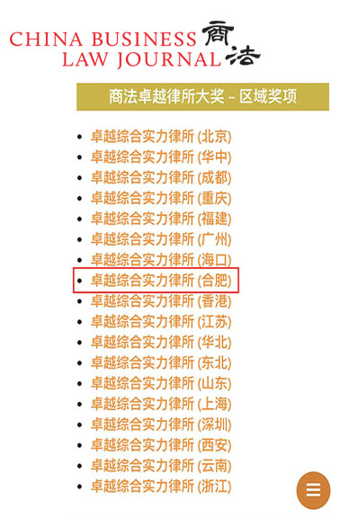10月15日,知名法律雜志《商法》(China Business Law Journal)公布了2024年度“卓越律所大獎”區(qū)域榜單,天禾律師事務(wù)所(以下稱“天禾所”)憑借出色的專業(yè)實力、卓越的區(qū)域影響力和廣泛的客戶認可,再次榮獲“卓越綜合實力律所(合肥)”大獎。