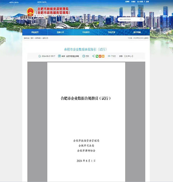 1.深度參與合肥市數(shù)據(jù)資源管理局、合肥市司法局、合肥市律師協(xié)會(huì)聯(lián)合發(fā)布的安徽省首個(gè)《合肥市企業(yè)數(shù)據(jù)合規(guī)指引(試行)》編制工作,對(duì)企業(yè)開(kāi)展數(shù)據(jù)合規(guī)管理、建設(shè)數(shù)據(jù)合規(guī)管理體系作出系統(tǒng)性指導(dǎo),為企業(yè)數(shù)據(jù)合規(guī)實(shí)踐指明切實(shí)可行的“合肥路徑”;