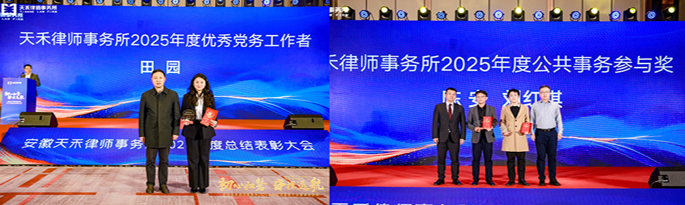 2025年12月31日,安徽天禾律師事務(wù)所2025年度總結(jié)表彰大會(huì)暨迎新年晚會(huì)在合肥君悅酒店成功舉辦。全體同仁齊聚一堂,共同回望奮斗歷程,共話未來(lái)發(fā)展藍(lán)圖。