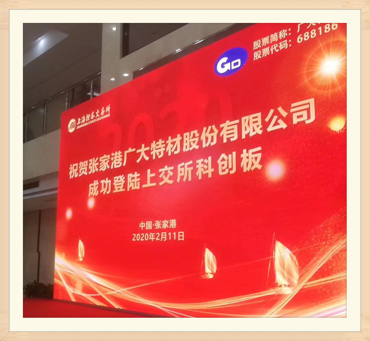 2020年2月11日,由本所擔(dān)任發(fā)行人律師的張家港廣大特材股份有限公司(股票代碼“688186”,股票簡稱“廣大特材”)成功完成首次公開發(fā)行股票并在科創(chuàng)板上市,發(fā)行股份4,180萬股,發(fā)行價(jià)格為17.16元,募集資金總額7.17億元。